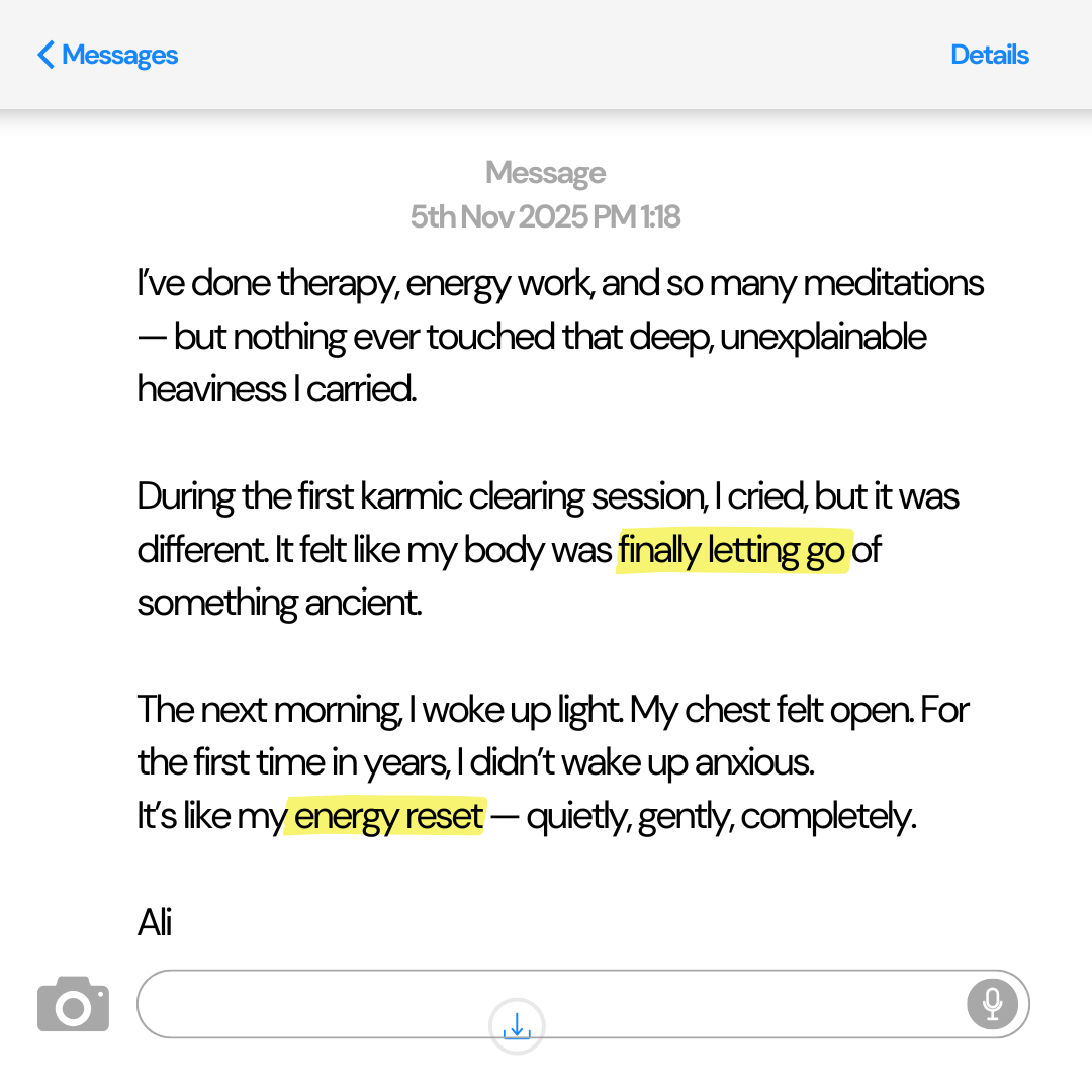 This course works on the energetic level — not belief. Whether you see karma as emotional patterns, ancestral energy, or simply subconscious imprints, the meditations are designed to release heaviness and bring calm, regardless of your spiritual background. 🌸
